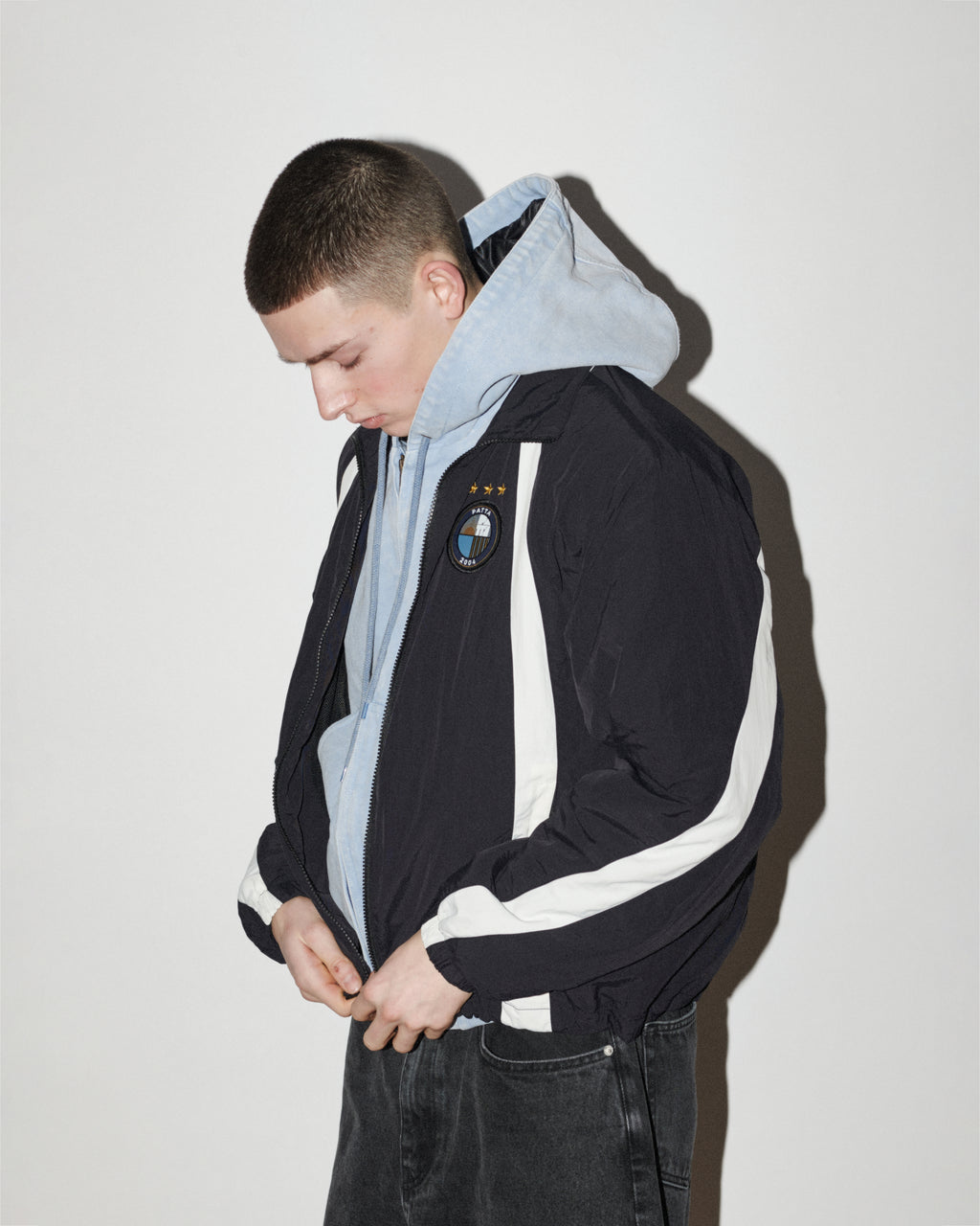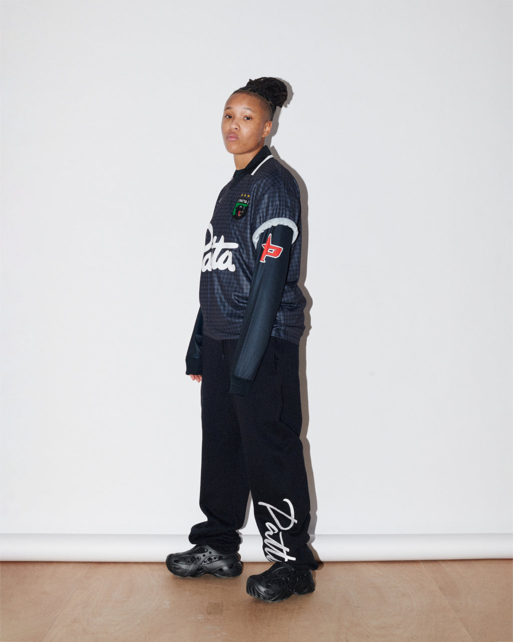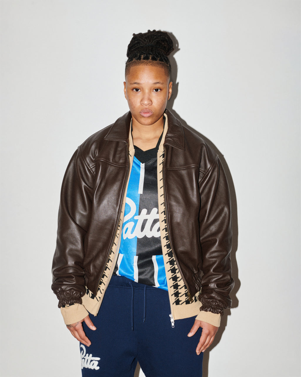 The season introduces football and American football jerseys, denim in multiple washes, tricot tracksuits, knits, zipped hoodies and Patta staples. Leather steps forward with embossed