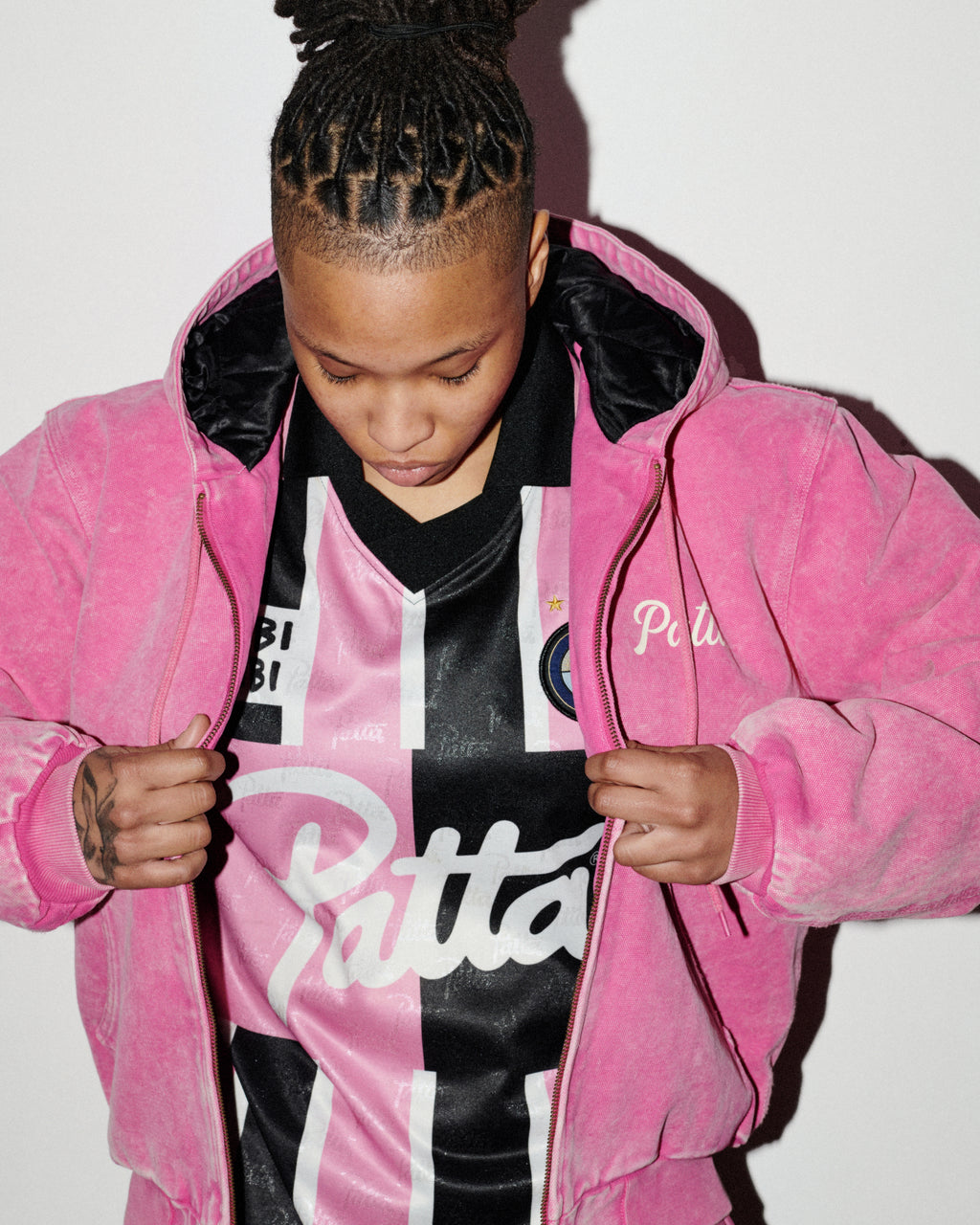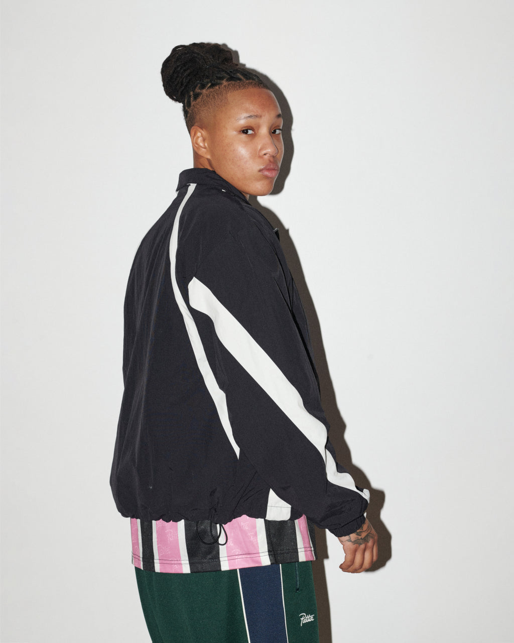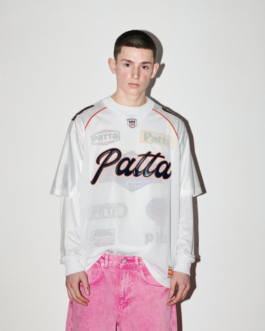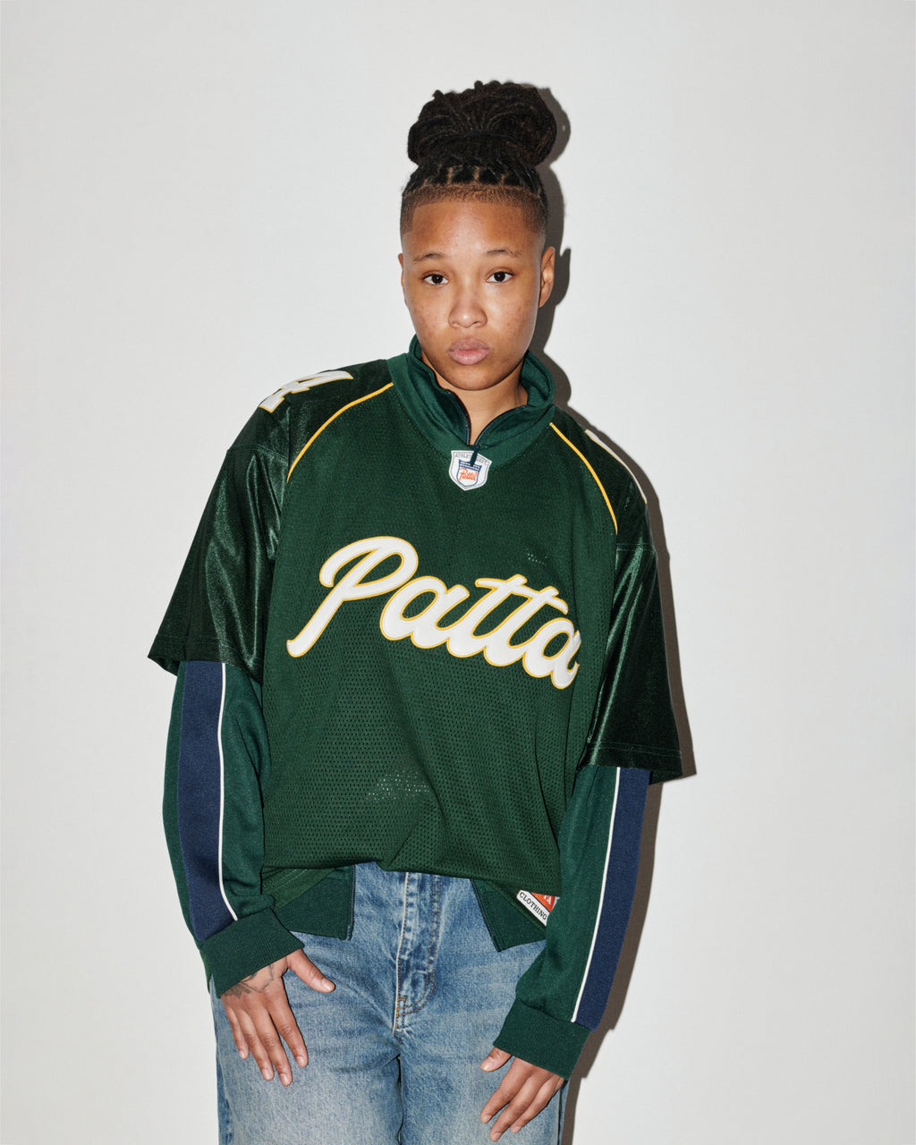 The season introduces football and American football jerseys, denim in multiple washes, tricot tracksuits, knits, zipped hoodies and Patta staples. Leather steps forward with embossed